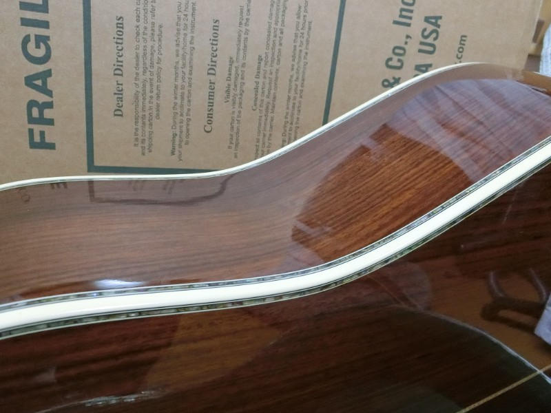 肝心の音ですが、サスティンがすばらしく、特に345弦は伸びます。D-28が前にドンと出る音なら
