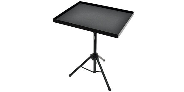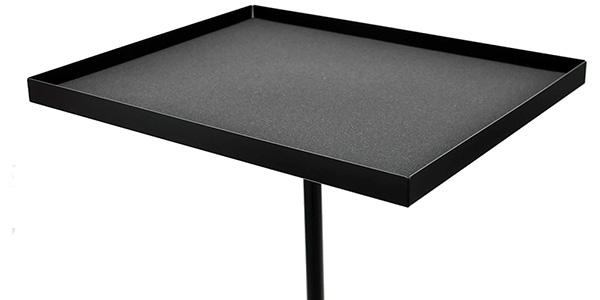 マレットやスティック、小物打楽器を置くことができます。テーブル表面に衝撃を吸収するクッション材を敷き詰めることで、置く際のノイズを軽減。約30mmの縁取りを設け、転がりやすいシェイカーやスティックも安心して置くことができます。打楽器だけでなく、マイクや管楽器のミュート置き等、さまざまな場面で活躍します。