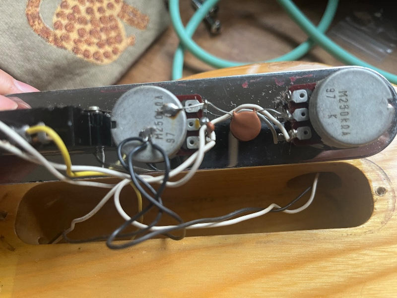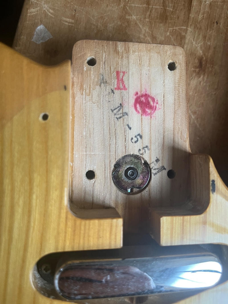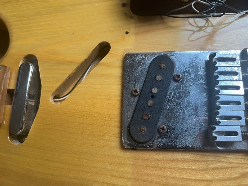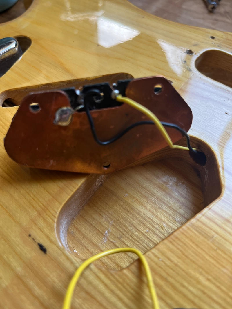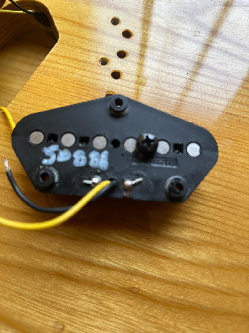 センボディ、ワンピースメイプルネック、ピックアップにはFender JapanオリジナルのHOTROD-5Tを搭載しておりましたが、リアの調子が悪く、アメリカンスタンダードに搭載されていたピックアップにリアのみ。交換いたしました。
