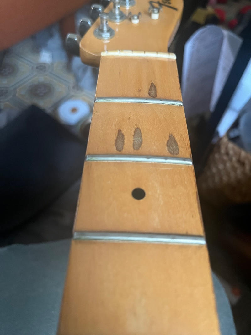 ボディには経年の傷、指板に若干のコーティング剥がれ、金属パーツの錆などありますが演奏に支障はありません。鳴り良いです。